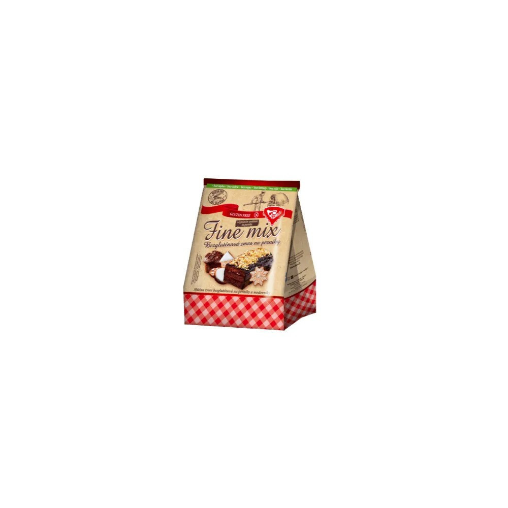 - kukuřičný škrob, rýžová mouka, kypřící látky: hydrogenuhličitan sodný a difosforečnan disodný, mleté perníkové koření (badyán, hřebíček, zázvor, fenykl, anýz, muškátový oříšek),kakaový prášek s nízkým obsahem tuku, stabilizátor: karboxymethylcelulóza