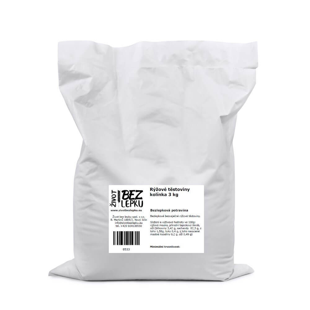 Bezlepkové bezvaječné rýžové těstoviny ve tvaru kolínek.