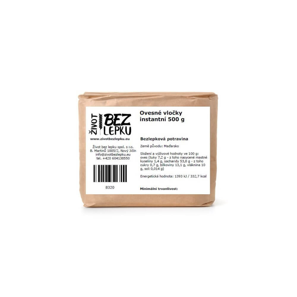 Bezlepkové ovesné vločky instantní pro rychlou přípravu.