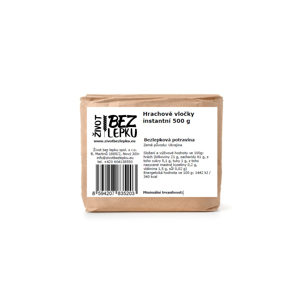 Bezlepkové instantní hrachové vločky.