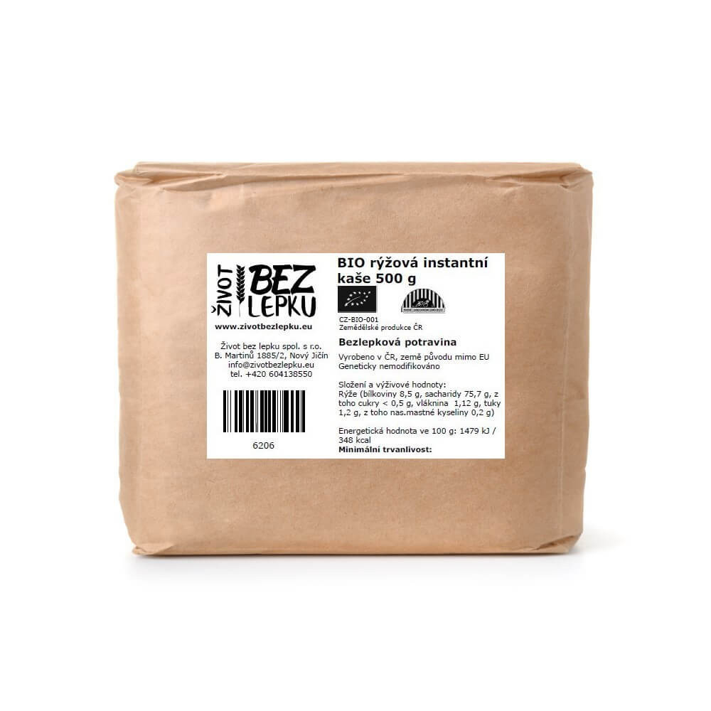 Bezlepková BIO instantná kaša vyrobená zo surovín, ktoré neboli geneticky modifikované.